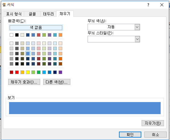 저는 바탕색을 채우기 위해 채우기탭에서 배경색을 선택했습니다.