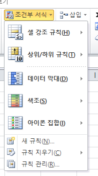 위에서 설명드렸던곳에서 조건부서식을 클릭합니다.